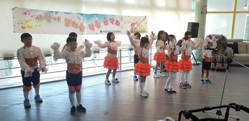 이후로 예쁘고 발랄한 옷을 입은 저학년 학생들의 앙증맞은 댄스가 있었습니다.