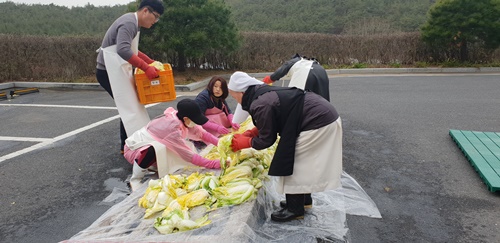 어제에 이어서 오늘은 배추를 씻고, 배추 속을 채우는 일을 하였습니다.