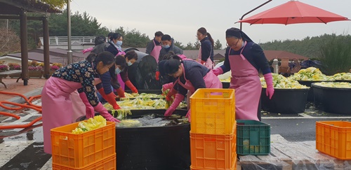 1,000포기가 넘는 많은 양이지만 서로 힘을 합하니 오전만에 김장이 마무리 되었습니다.
