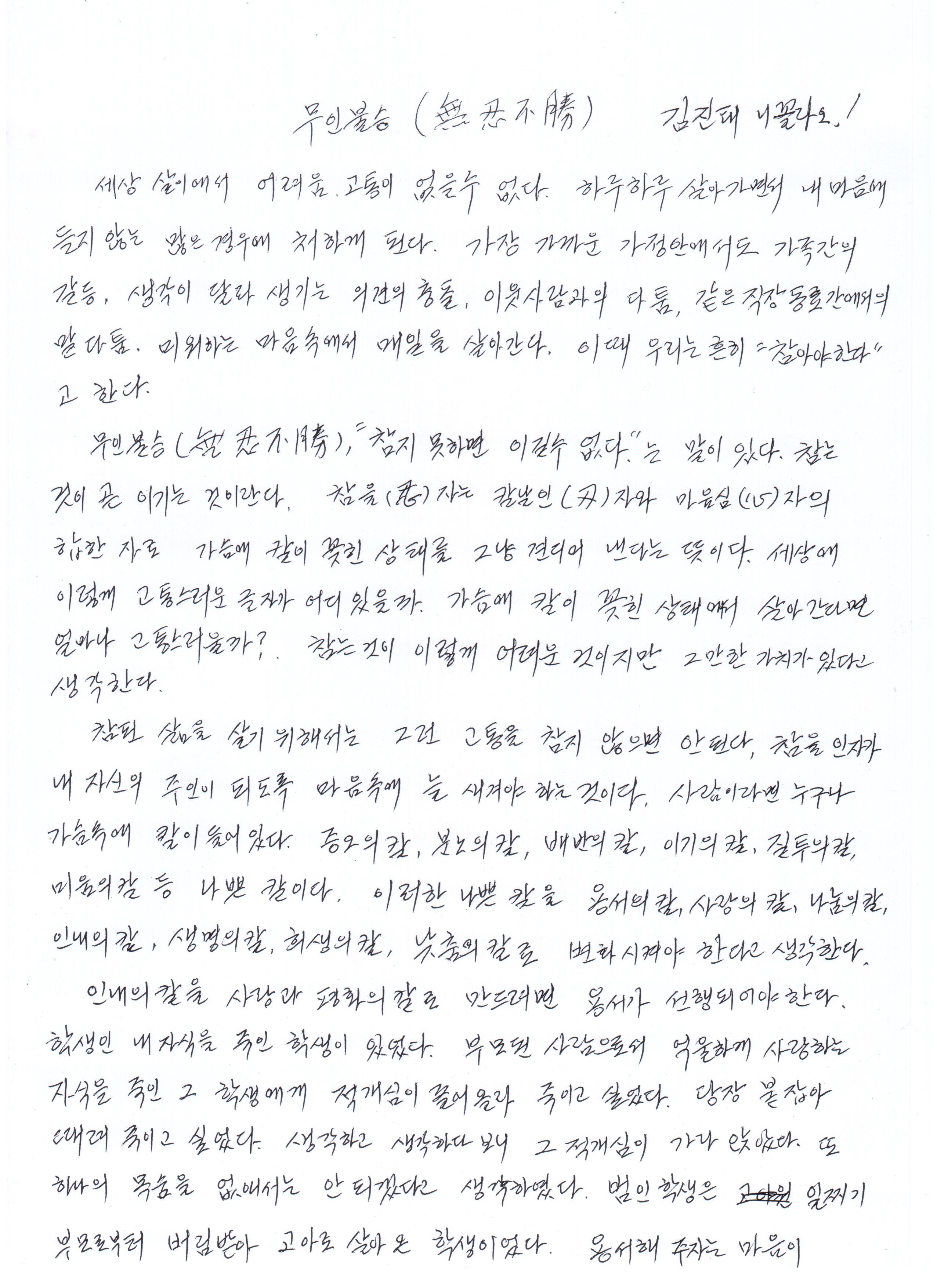 [재원환자] 김진태 아버님의 수필(무인불승)